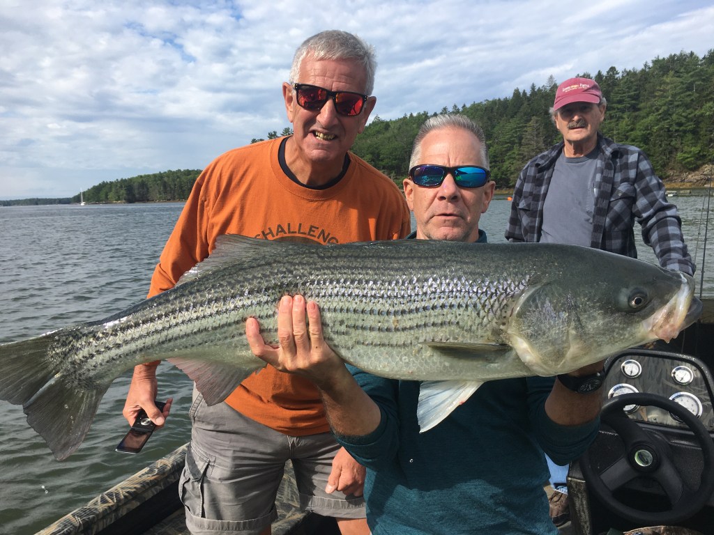 Maine striped bass fishing delivers a consistently exciting fishery every summer for anglers young and old. We pursue striped bass by trolling, spin casting, and fly rods with a fully outfitted Carolina skiff equipped with the latest fishing gear. Reel in boat trophy fish with family and friends and create memories that will last a lifetime!